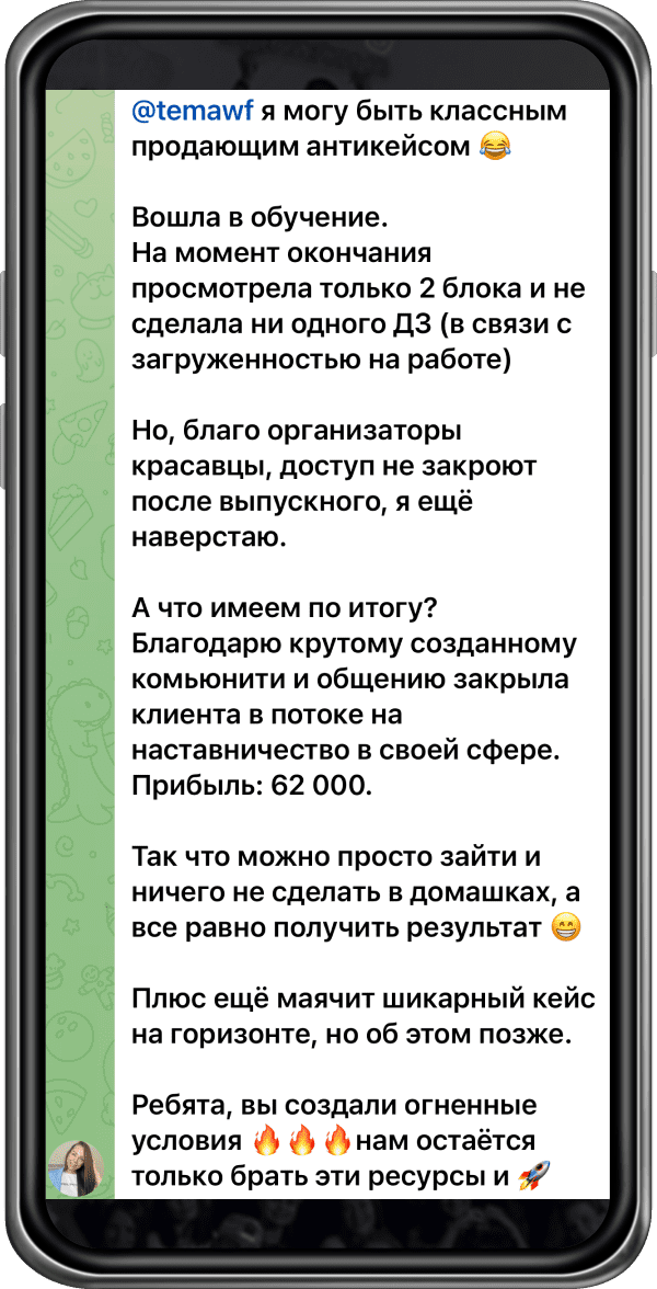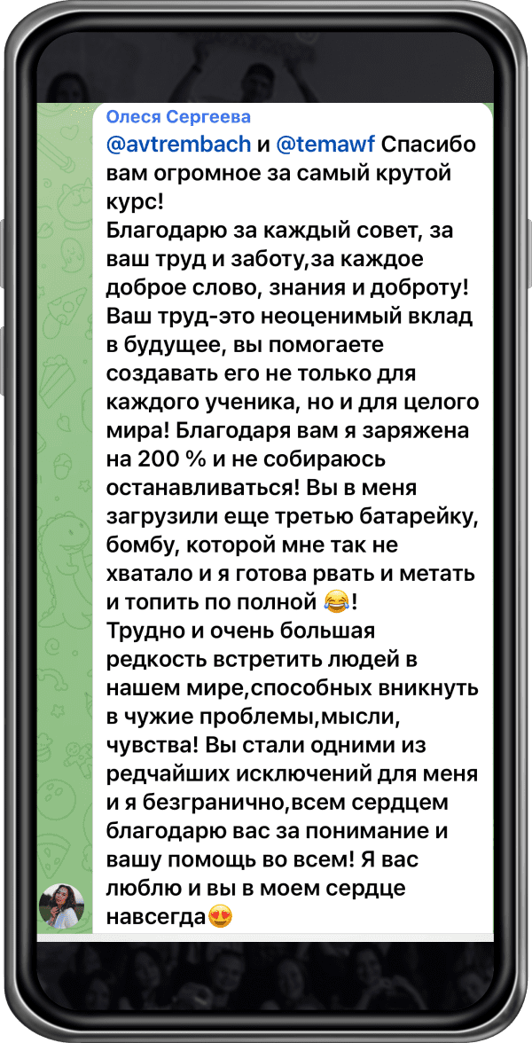 Наших уроков, заданий, поддержки и обратной связи хватит для того, чтобы привести вас к нужному результату, если вы будете все делать